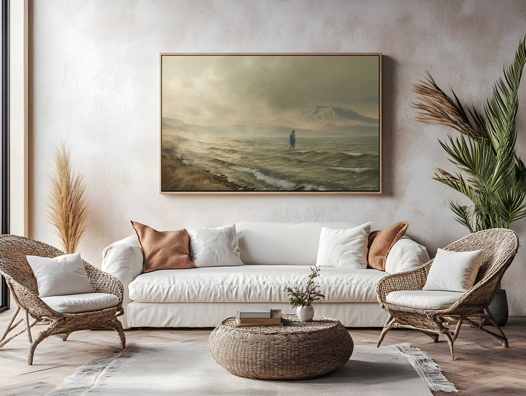 Quadro Decorativo: Jesus Caminhando Sobre as Águas | Alta resolução 4K 🌊⛰️
