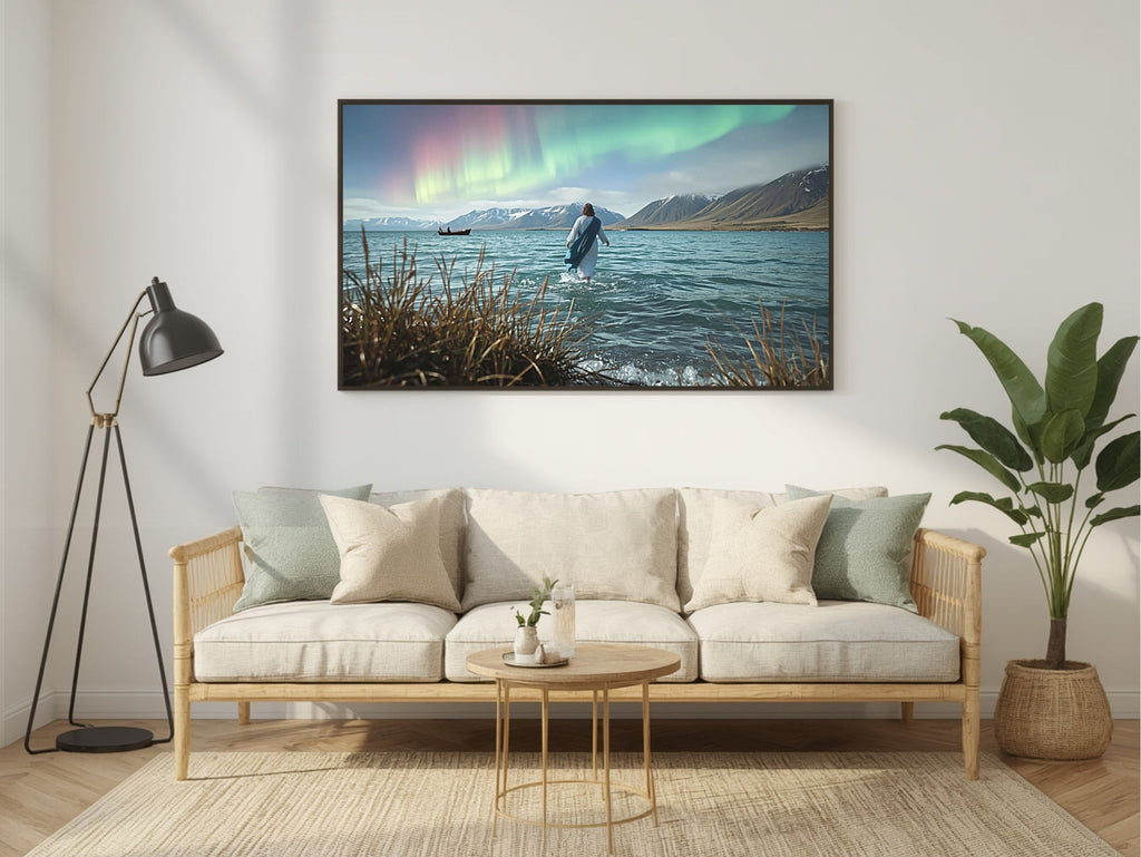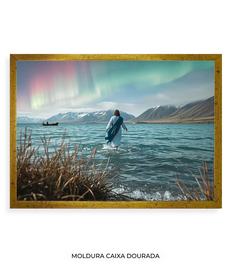 Quadro Decorativo: Jesus sobre o mar e a Aurora Boreal | Decore Paz 4K 🙏🏼🏞️
